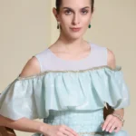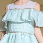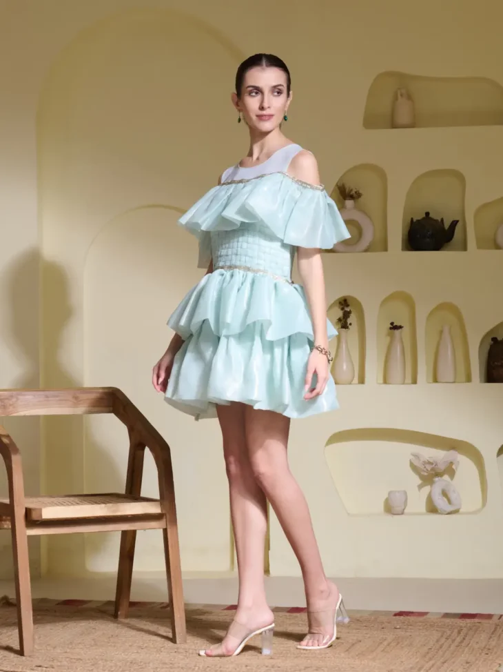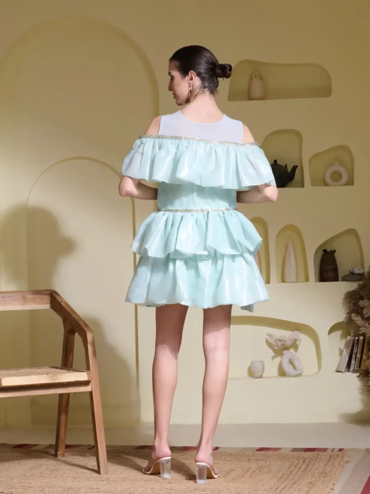 Dress: Mint green glass organza with structured ruffles