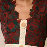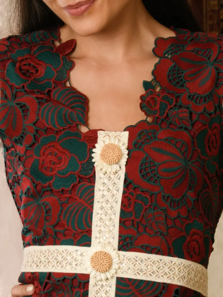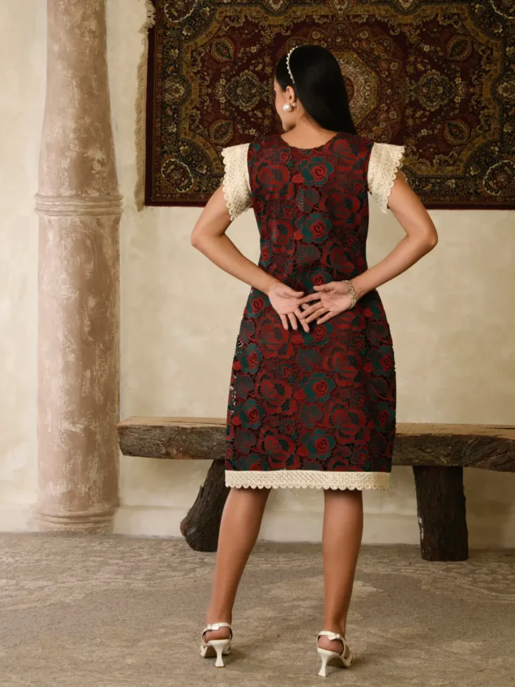 Fabric: Premium corded floral lace in wine red and forest green tones