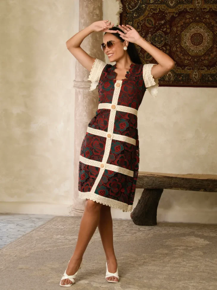 1 review for MAMA SAID CHIC ROSETTA GRID LACE DRESS