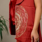 • Pants include subtle zari motifs woven into the fabric for a rich texture.