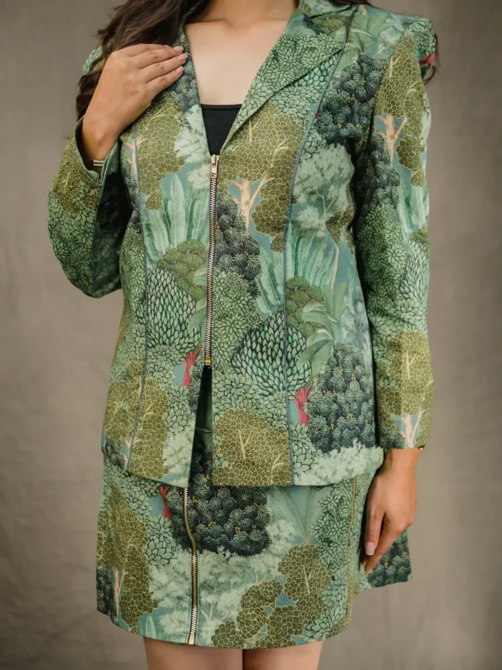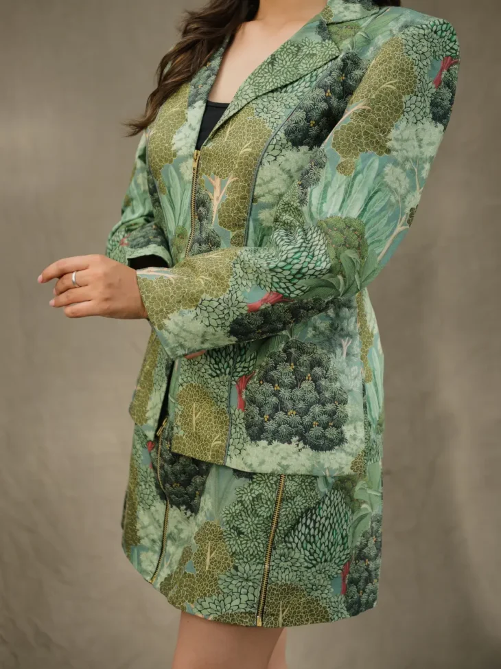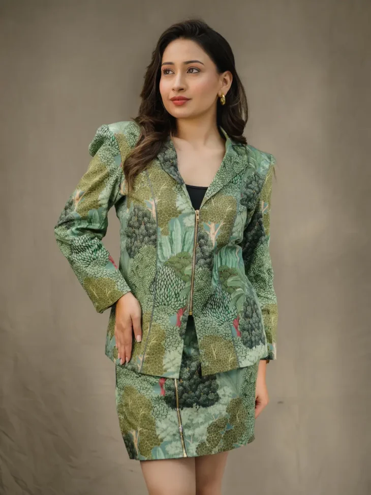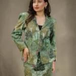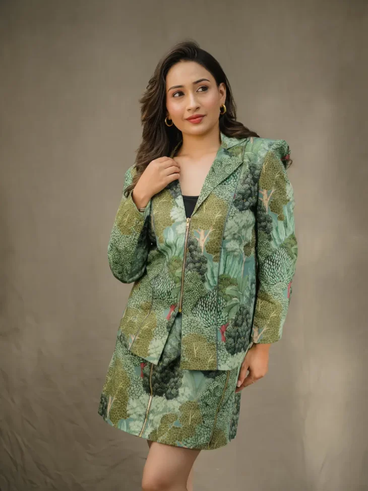 Vibe: Power dressing meets artistry – a bold co-ord set that redefines modern elegance with our signature in-house design.